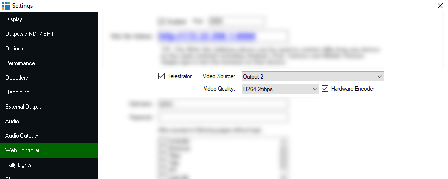 Before using the Telestrator, first enable and configure the Telestrator in the Web Controller settings: