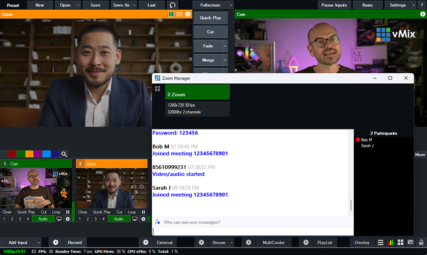 We now have our other Zoom participant added into our production.